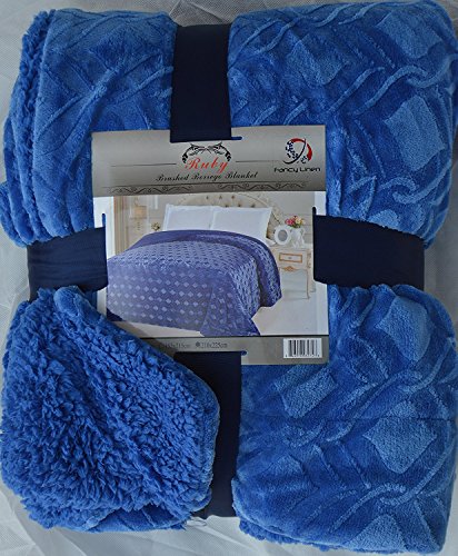 Fancy Collection Twin Size Embossed Blanket Sumptuously Soft Plush Sollid Blue with Sherpa Revirsable Winter Blankets Bedspread Super Soft New (Twin Size, Blue)