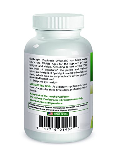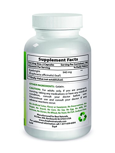 Best Naturals Eyebright 470 mg 180 Capsules - Manufactured in a USA Based GMP Certified and FDA Inspected Facility and Third Party Tested for Purity....