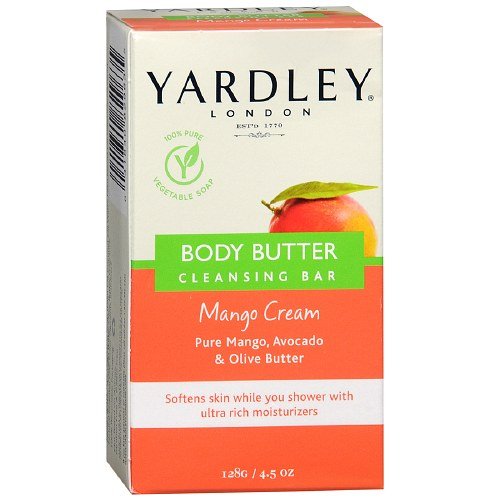 -. Binding : Health and Beauty -. Brand : Yardley -. Label : Yardley of London -. Manufacturer : Yardley of London -. ProductGroup : Health and Beauty -. ProductTypeName : HEALTH_PERSONAL_CARE -. Publisher : Yardley of London -. Studio : Yardley of London -. Title : Yardley of London Body Butter Cleansing Bar, Mango Cream, 4.5 oz Pack of 2