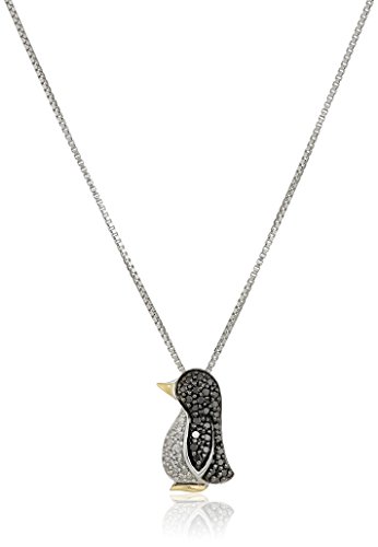 sterling silver and 14k yellow gold necklace featuring black and white diamond penguin pendant
