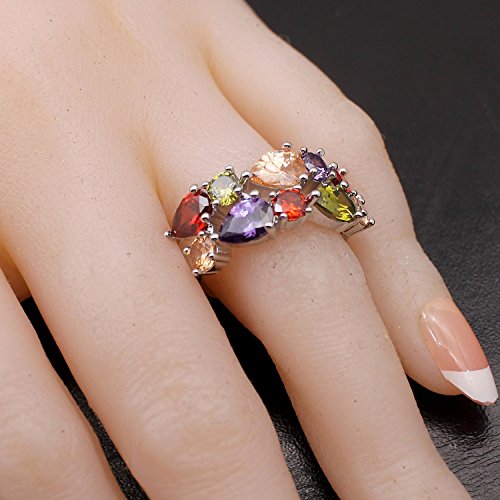Multi Gemstone Ring Morganite Garnet Amethyst Promise Wedding Party for Girls Women