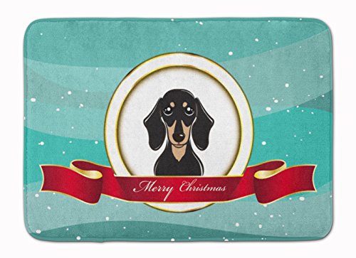 Caroline's Treasures BB1525RUG "Smooth Black Tan Dachshund Christmas" Floor Mat, 19" x 27", Multicolor