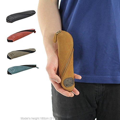 Genuine Suede Pencil Case Small Stationery Holder Twist-Zip Design Office Smart Unisex Accessory 2S7-22-8