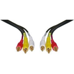PcConnectTM Stereo/VCR RCA Cable, 2 RCA (Audio) + RCA RG59 Video, Gold Plated, 12 feet cable