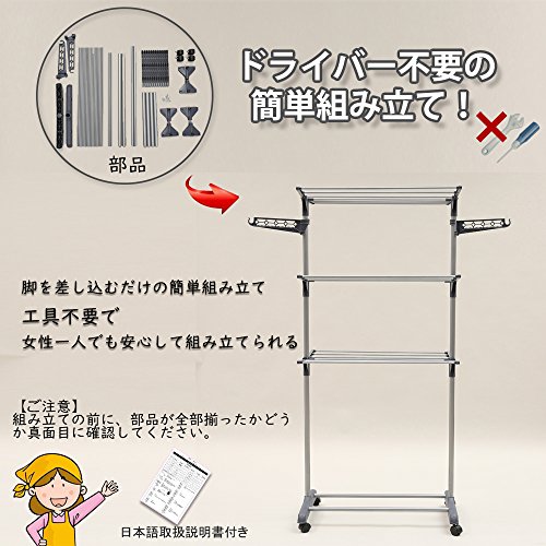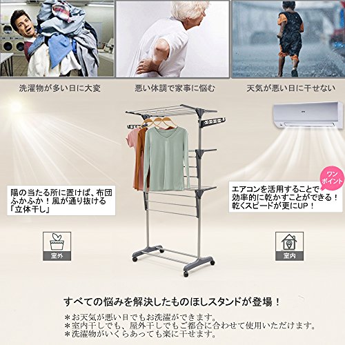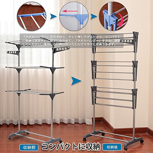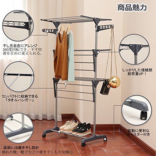 干し方自在にアレンジできる吊り干しスタンドも付き、干す量増し!底部にもちゃんと乾し、収納できる設計で、濡れた靴、などの置き干しもお手軽に!