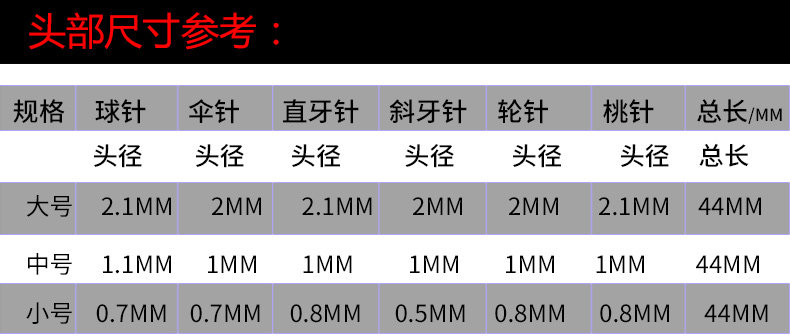 Shape: Each set contains: ball needles, umbrella needles, straight teeth needles, oblique teeth needles, peach needles each one.