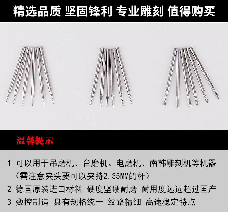 Material: high-speed tungsten alloy steel Size: handle diameter of 2.35MM