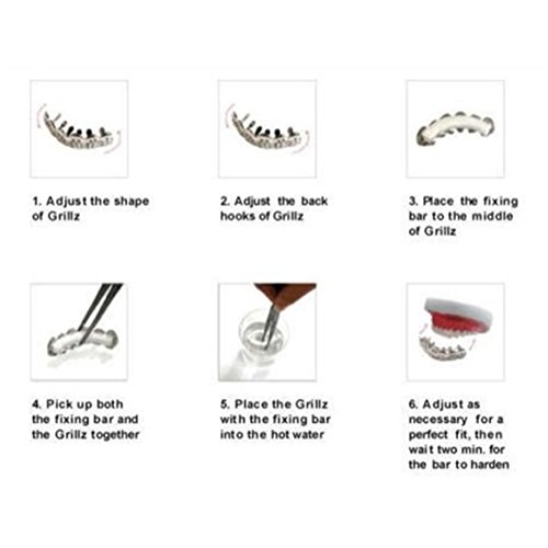 Captain Crafts Gold Plated Hip Hop Fangs Teeth Grillz Caps Top Bottom Teeth Set (Silver)