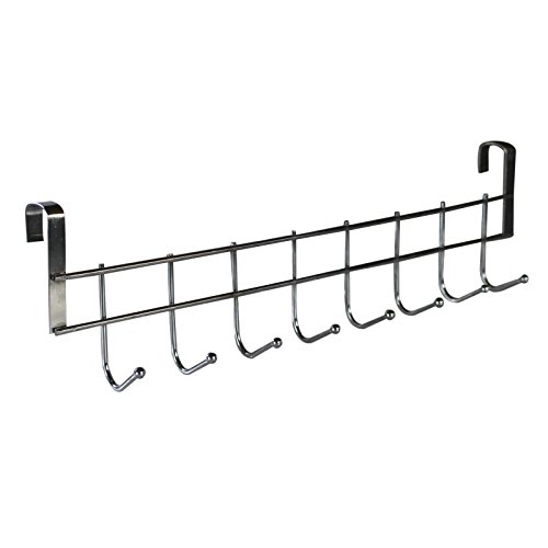 8 Over Door Hook Rack / Cabinet Hook Organizer by Belle Vous - Door Hooks - Door Hanger for Cupboards, Wardrobes, Bathroom, Bedroom and Kitchen - Hook Hanger - Hook Rail - No Screws - Christmas Gift