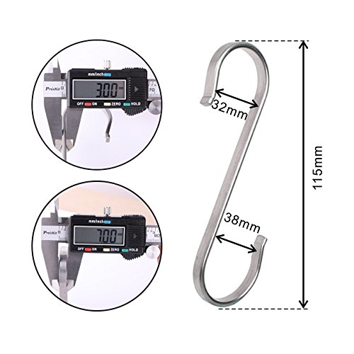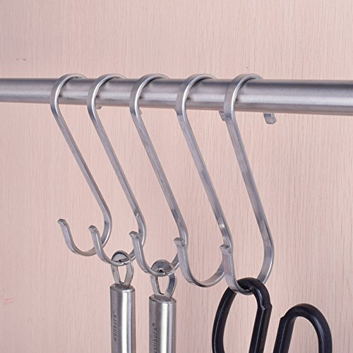 Mellewell 5 Pack Large 4.5" Flat S-Shaped Hooks Heavy Duty Genuine kitchen hooks for pots and pans, SH3001XL-5