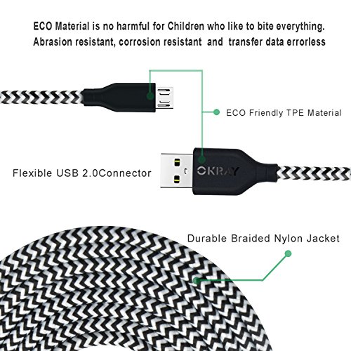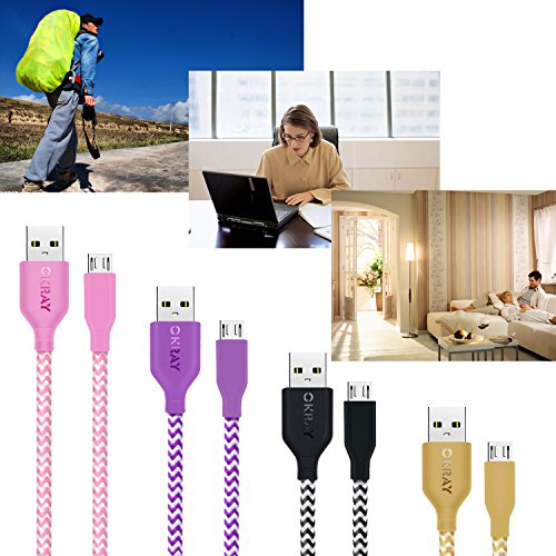 Android Charger, OKRAY 3 Pack 10ft 3M Durable Braided Nylon Tangle-Free Micro USB 2.0 Charge Cable Sync Charging Cord for Android, Samsung, HTC, Google Nexus, Sony, Nokia and More(Black White Pink)