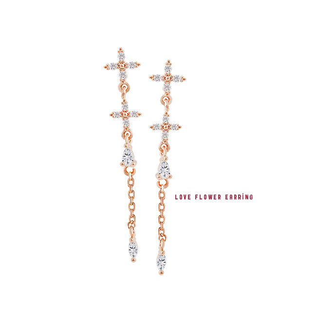 큐티한 꽃 모양으로 디자인된 러브 플라워 귀걸이.