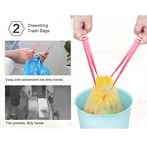 DRAWSTRING TRASH BAGS: The drawstring ensures a tight grip on trash cans and makes for a simple removal with a quick cinch of the durable drawstring.