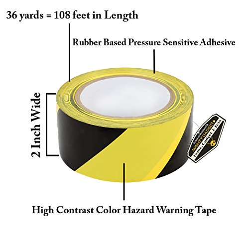 - You will receive 1 roll of Mighty Gadget brand black & yellow hazard warning safety stripe vinyl (PVC) tape - Dimensions: 2” x 108 feet & 6 mil thickness