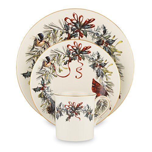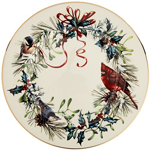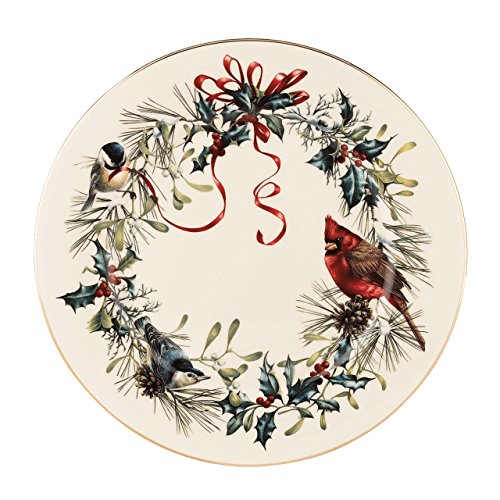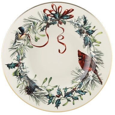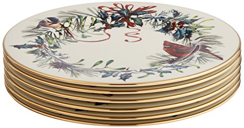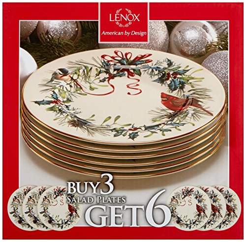 Artistic splendor to brighten your holiday table, Winter Greetings is one of Lenox's most treasured heritage patterns. Bearing the acclaimed artistry of Catherine McClung, the festive design is an intricate composition of garden birds, red and gold bows and holly. Rich in color, decorate your table to warm cranberry and pine hughes. With our corporate office located in Pennsylvania and our fine dinnerware factory in Kinston, North Carolina we are proud to be a part of American tradition. With all of the craftsmanship and quality for which a pattern is known, it is no surprise that Winter Greetings is a treasured collection in homes worldwide. Crafted of Lenox ivory bone china accented with 24 karat gold, Lenox Winter Greetings fine dinnerware is made in the USA by American artisans and is dishwasher safe for your convenience. Best of all, this classic collection is created by Lenox, America's first name in home entertaining, known around the world for offering a unique combination of design artistry and superior quality for over 125 years. The confidence that Lenox has in the unmatched durability of every product they offer is backed by a lifetime breakage replacement policy to guarantee many years of enjoyment to each customer. Get your table set for festive dining with these beautiful 6 Salad Plates. The generously-sized Winter Greetings Salad Plate will help start every seasonal celebration in classic holiday style.Feature