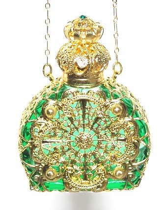 Czech Jeweled Decorative Green Perfume Oil Bottle Holder Necklace/pendant