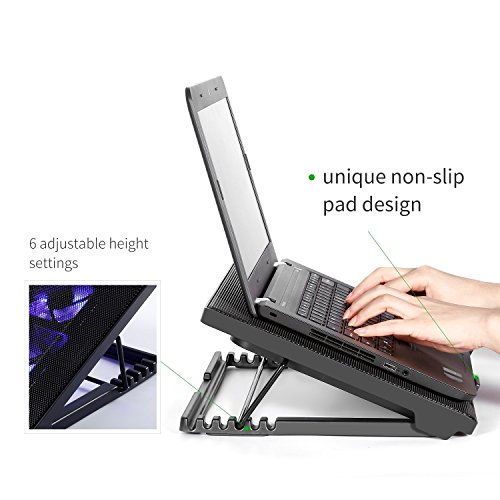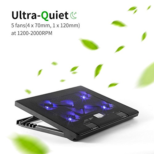 Cooling Pad, LESHP USB Laptop Fan Laptop Cooler Portable for 10-16 inch Laptops with 5 Quiet Fans 2000RPM, Black