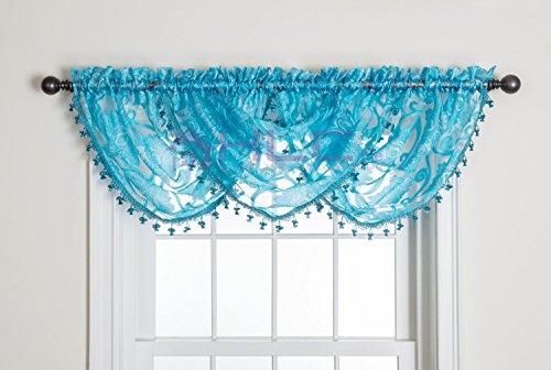 HLC.ME Milawi Curtain Panel & Valance. Beautiful Damask organza sheer pattern to add a bright chic look to your living room. Panel measures 54" inch Wide x 84" inch Long. Waterfall Valance measures 57" inch Wide by 37" inch Long. To achieve the full look, you will need to purchase, three (3) valances and two (2) panels. Machine Washable. Imported.Feature