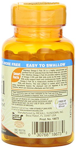 Sundown Naturals Naturals Odorless Premium Omega-3 Fish Oil, 72 Softgels (Pack of 2) Total 144