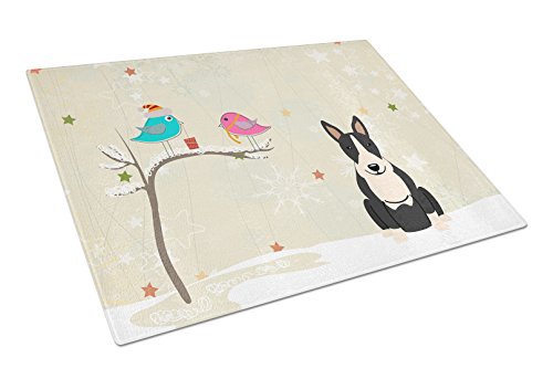 Caroline's Treasures BB2605LCB Christmas Presents Between Friends Bull Terrier Black White Glass Cutting Board, Large, Multicolor