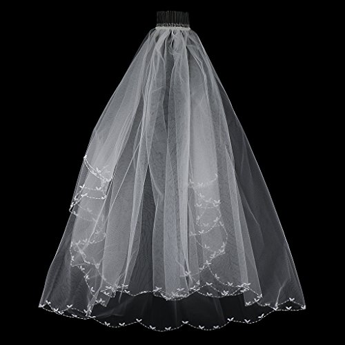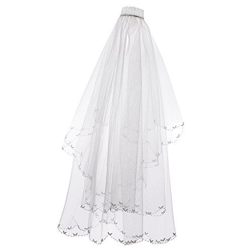 Description: - Material:Tulle - Stunning wedding bridal veil with comb,it has 2 layer of soft veil. - This elegant and classic bridal veil will embellish any wedding dress. - Make you more charming and you will be the spotlight in any occasion. - Perfect for wedding party,chapel,cathedral,bridal shower,bride to be, hen party etc. Size Chart: Tulle Length:70-80cm / 27.56-31.5inch Tulle Width:150cm / 59.1inch