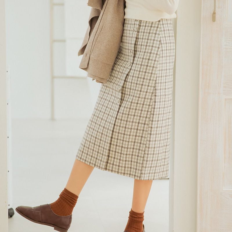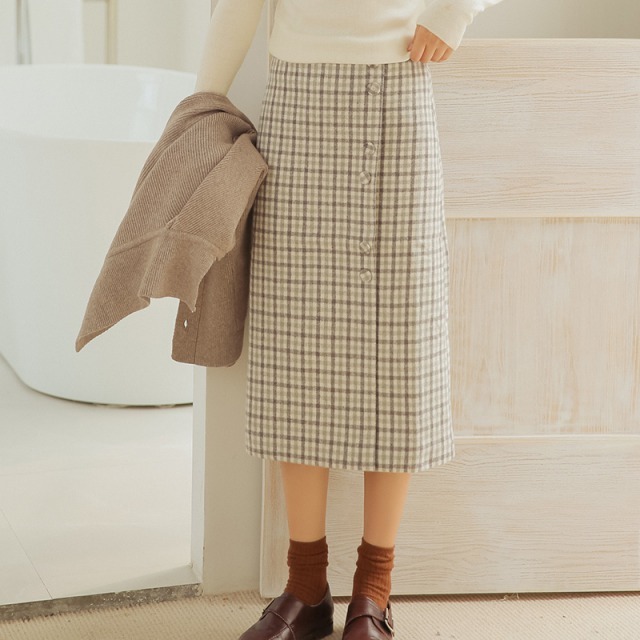 シーズンムード漂うチェック柄が可愛いきれいめタイトスカートです。