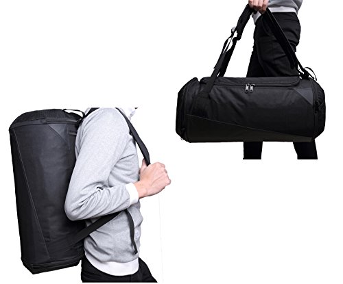 -. Feature : Two carry options backpack duffel: Adjustable shoulder straps allow duffel to double as a backpack, the breathable and padded straps have been updated for a more ergonomic fit and to minimize twisting / Ventilated shoe/Laundry pocket: 1 end-cap zippered compartment (length: 12.2inch) allows you to separate wet clothes, dirty shoes or extra gear without stain other area, 1 end pocket for shampoo, shower gel and etc, 1 mesh pocket for water bottler / Carry-on size: 50*27*27cm/20*11*11inch, fits most gym/club lockers, also fits fine in the overhead bins or under the seat when flying / Super lightweight gym bag: Only 18oz/0.51kg, made from durable material, main compartment has double zippered U-shaped lid with internal pocket keeps small essentials organized, waterproof bottom, solid stitching reinforcement on all stress points, SBS zipper / Versatility: Perfect for camping, hiking, traveling, gym sports, school, weekender overnight bag and everyday life