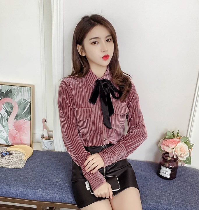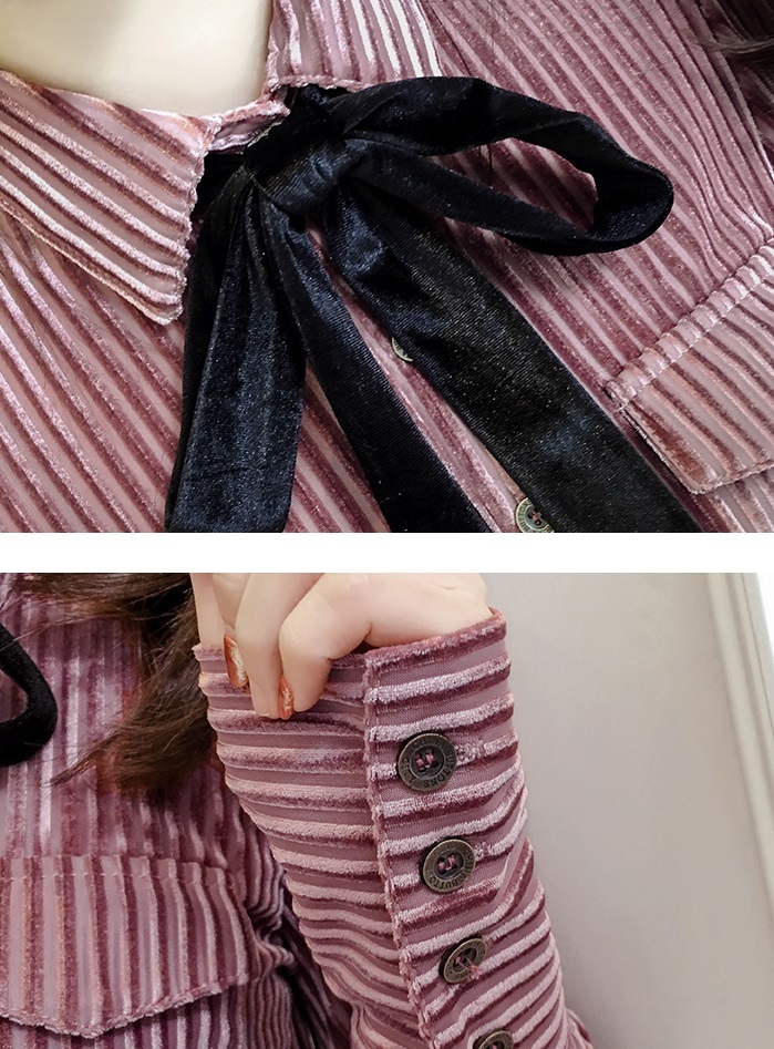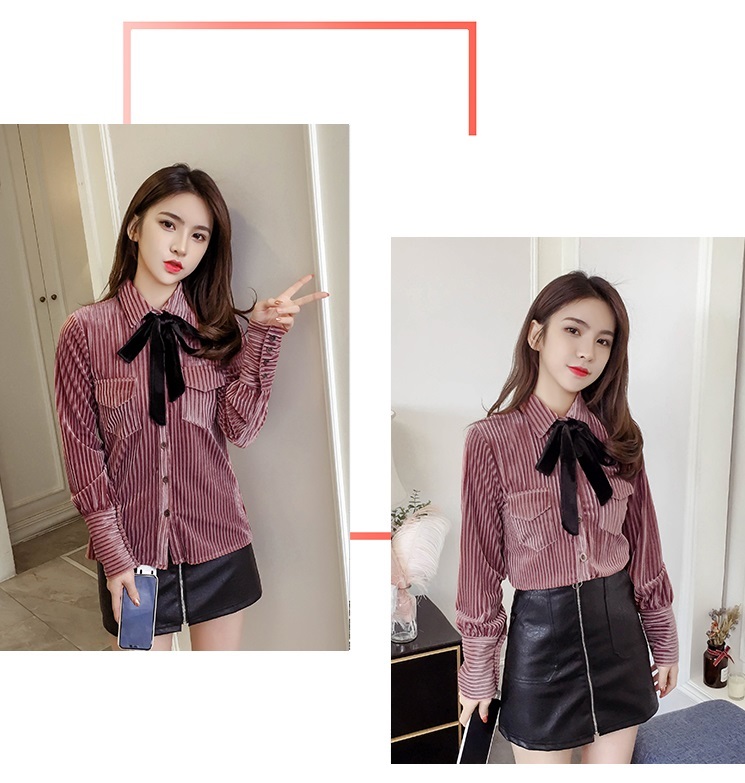 ベロアで作りだされた立体的なストライプ柄が印象的な大人シックシャツです♪