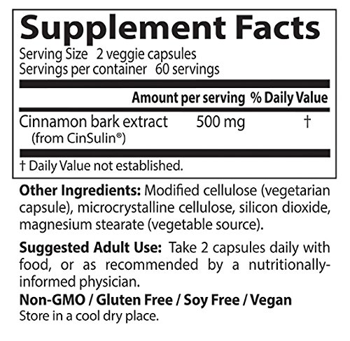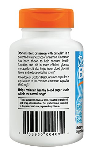 ReleaseDate : 2017-03-24 Studio : Doctor's Best Publisher : Doctor's Best Binding : Health and Beauty Product Description Doctor's Best Cinnamon with CinSulin is a patented water extract of cinnamon. Cinnamon has been shown to help enhance insulin function and aid in more efficient glucose metabolism. It also helps lower blood glucose levels and reduce oxidative stress. One dose of Doctor's Best Cinnamon capsules is equivalent to 10 common cinnamon capsules (500 mg). 0