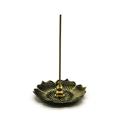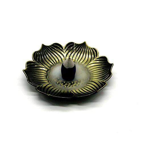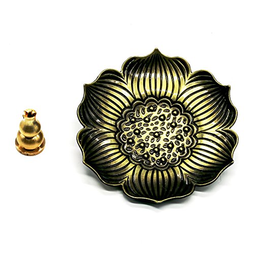 Omonic Bronze Lotus Dish Stick Incense Burner Holder(Stick/ Cone/ Coil Incense) Aromatherapy Furnace Diffuser for Home Decor