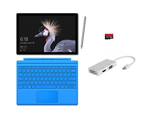 -. Feature : UP TO 13.5 HOURS OF BATTERY LIFE: 50% longer battery life than the Surface Pro 4, with 2.5x more performance than the Surface Pro 3. / A NEW GENERATION OF CPU: Features Intel's 7th generation of processors for unprecedented power and responsiveness. / 3 MODES TO CHOOSE FROM: Laptop Mode, Studio Mode with the New Surface Pen, and Tablet Mode. / WHISPER QUIET: m3 and i5 models feature a new fanless cooling system, plus improved hybrid cooling on the i7 model. / Bundle includes: New Surface Pro core i5 8GB 256GB tablet, Light Blue Type Cover (2016), New Surface Pen Platinum,128GB Micro SD card, and Mini DisplayPort to HDMI/VGA/DVA Cable Adapter