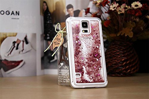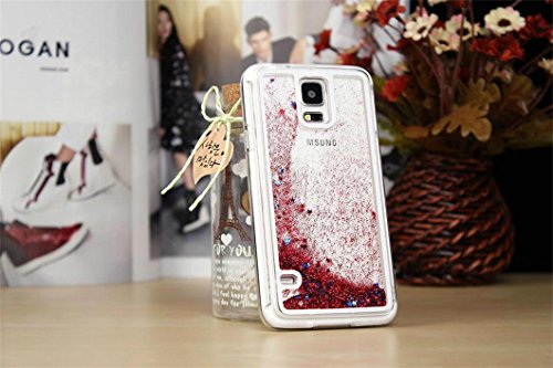 Samsung Galaxy S5 Phone Case Borch Fashion Sparkling Stars Quicksand Liquid Hard Case Cover Samsung Galaxy S5 I9600 Borch Screen Protector (Rose red)