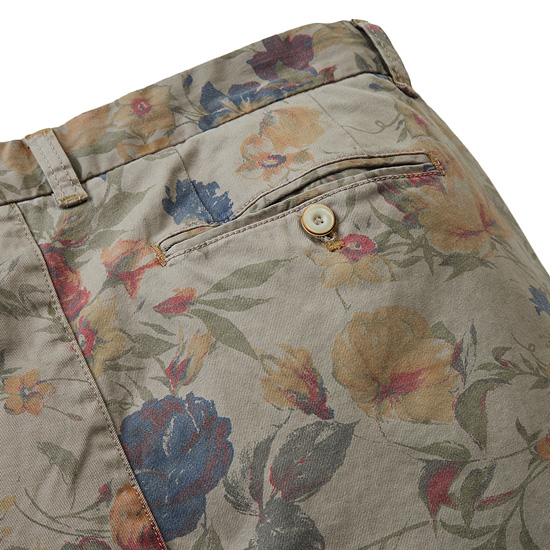 - 감각적인 빈티지 플라워 프린팅으로 포인트를 준 남성 팬츠.