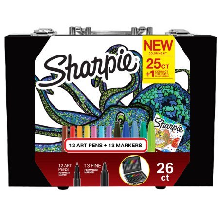 Sharpie New Coloring Kit with 12 Art Pens + 13 Markers+1 Connect the Dots Coloring Book
