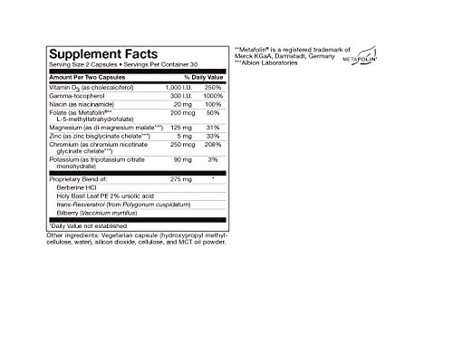 GlucoScript Blood Sugar Support Formula by Suzy Cohen with Berberine, Tulsi and Bilberry - Helps Support Healthy Blood Level - Dietary Supplement...