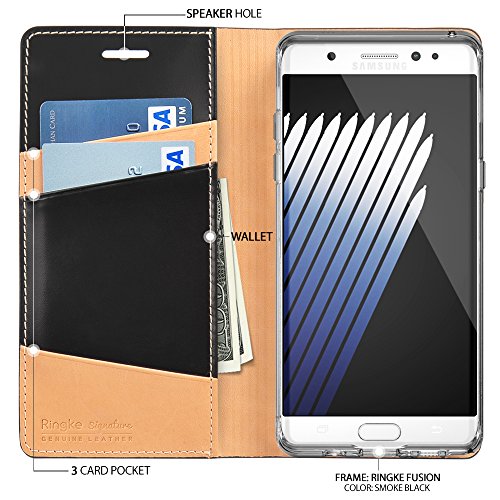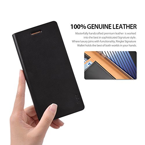 -. Binding : Wireless Phone Accessory -. Brand : Ringke -. Color : Black -. EAN : 8809512150843 -. Feature : Perfectly compatible with Galaxy Note 7 2016 / Every SIGNATURE Premium 100% Genuine Leather Wallet Case comes. / Premium handcrafted leather bound case with rich stylish dual color feature / Best of both worlds: Full 3 ID/Card slot functionality to access cards and phone together. / Engineered with full degree protection, covers all 4 corners and raised edges to keep the screen from touching the surface when face down without leather cover in place. -. Label : Ringke -. Manufacturer : Ringke -. Model : RSGNGNT7BLK843 -. MPN : RSGNGNT7BLK843 -. PackageQuantity : 1 -. PartNumber : RSGNGNT7BLK843 -. ProductGroup : Wireless -. ProductTypeName : WIRELESS_ACCESSORY -. Publisher : Ringke -. Studio : Ringke -. Title : Galaxy Note 7 Case, Ringke [Signature] Genuine Leather Wallet Case [3 ID / Card Slot] Handcrafted Premium Folio Multi Executive Travel Wallet Flip Cover for Samsung Galaxy Note 7 2016 - Black