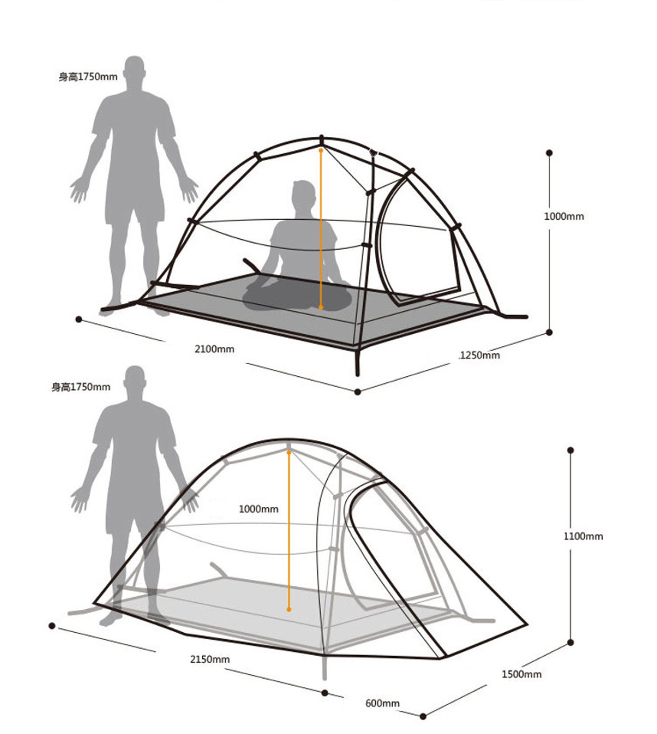 Weight: 20D waterproof silica gel fabric (gray, green): 1240 g (not included PEG, rope) 210 T plaid nylon fabric (orange, green): 1500 g (not included pegs, rope)