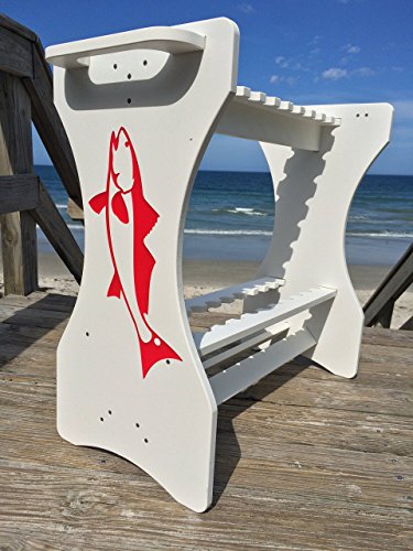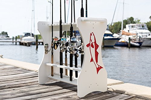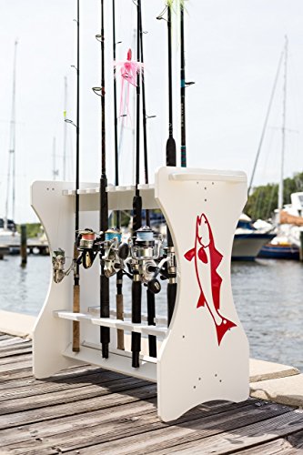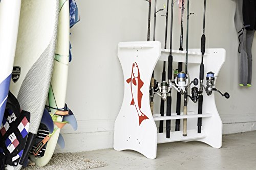 -. Binding : Misc. -. Brand : Sea Racks -. Color : White -. EAN : 0750253918330 -. Feature : 25 year warranty / Holds up to 24 rods / PVC composite, waterproof material- rinse your rods while on the rack! / Marine grade stainless steel screws / Redfish is engraved and hand poured with a red two-part epoxy resin -. IsAutographed : 0 -. IsMemorabilia : 0 -. Label : Sea Racks -. Manufacturer : Sea Racks -. PackageQuantity : 1 -. ProductGroup : Sports -. ProductTypeName : SPORTING_GOODS -. Publisher : Sea Racks -. Size : Large -. Studio : Sea Racks -. Title : Redfish Engraved Fishing Rod Rack - Waterproof - Organize and Store up to 24 Fishing Rod and Reels on this waterproof fishing pole storage -. UPC : 750253918330