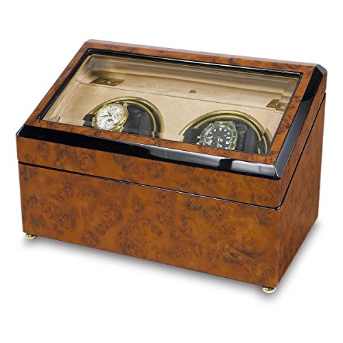 -. Title : Rapport London Walnut Burr Wood Dual Watch Winder w/ Glass Lid