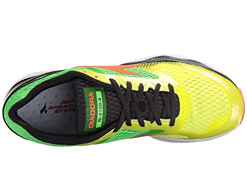 Binding : Apparel Product Description Keep your stride on point in lightweight stability and cushioning of the Diadora N-6100-4 running shoe! Predecessor: N-6100-3. Support Type: Overpronation/Stability. Cushioning: Lightweight, flexible response. Surface: Road. Differential: 11 mm. Breathable, waterproof membrane helps protect feet from outside elements. Nylon air mesh and Supreltech synthetic upper materials. Lace-up closure. Padded tongue and collar. Breathable fabric lining features an antibacterial treatment to keep feet feeling fresher for longer. Removable, anatomical, water-repelling, shock-absorbing Elastom EVA and PU foam insole. Molded Elaston EVA foam midsole. Double Action² cushioning in the heel provides exceptional shock absorption. Synthetic fiber jointed to the midsole. CCB Axeler Wi-5 propulsion and medial stabilizer controls torsional stability in the arch.. FLEXOFT blown rubber in the forefoot is lightweight, flexible, and shock absorbing. DURATECH 5000 outsole compound in the heel delivers lasting durability. Net Breathing System™ utilizes synthetic fiber mesh and a breathable, waterproof membrane in the sole for increased transpiration of moisture that keeps feet drier. Imported. Measurements: Weight: 12 oz Product measurements were taken using size 11.5, width M. Please note that measurements may vary by size. 0