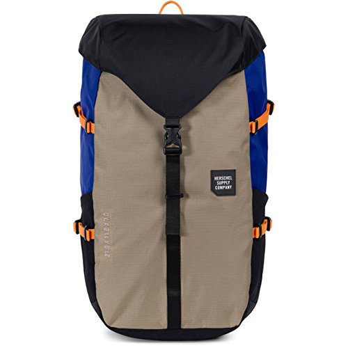 Take on both charted and uncharted terrain with the rugged durability and distinctive style of the Herschel Supply Co.® Barlow backpack! 210D Nailhead Dobby nylon with premium reinforced base. 1,500 mm water-resistant coating. Adjustable main compartment with clip fastened webbing cinch straps. 13 in padded laptop sleeve with key clip and neoprene key chain sleeve. Internal multi-loop webbing utility strap. Drawcord closure with clip fastened storm flap. Dual external micro-mesh water bottle pockets. Ripstop rain cover with hidden zippered storage sleeve. Contoured shoulder straps with adjustable sternum support. Embroidered dimensions and reflective Trail ID label. Imported. Measurements: Bottom Width: 11 1⁄2 in Depth: 6 in Height: 19 in Strap Length: 39 in Strap Drop: 16 in Handle Length: 5 1⁄2 in Handle Drop: 2 in Weight: 1 lb 7.8 oz This product may have a manufacturer's warranty. Please visit the manufacturer's website or contact us at warranty@support.zappos.com for full manufacturer warranty details.Feature