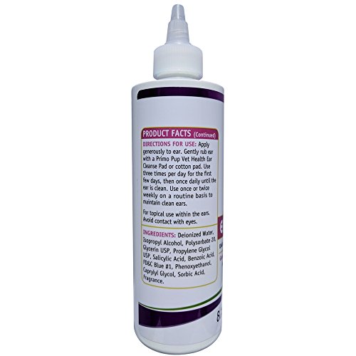 Veterinarian formulated by the dog health experts at Primo Pup Vet Health, this gentle ear cleansing liquid for dogs removes dirt and debris from the ear canal, dissolves wax buildup and deodorizes the ears. Regular use helps to keep ears clean and healthy and reduces the risk of irritation.