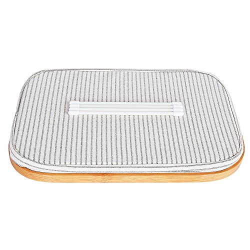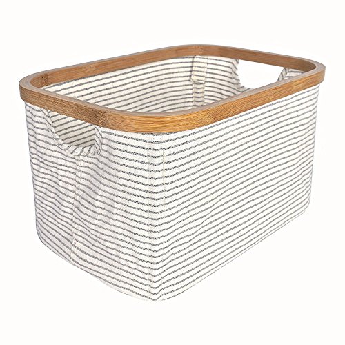 StorageWorks Canvas & Bamboo Storage Basket With Bamboo Handles, Foldable Organizer, Square Storage Bin By, Medium, White with Black Stripe, 15.0x10.2x8.3 inches