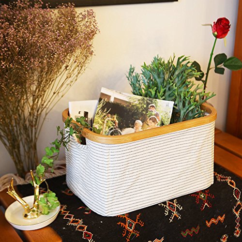 - STRONG BAMBOO HANDLES: Natural bamboo handles ensure your basket sturdy and durable for daily use. This square storage bin is the perfect organizing solution for your home, nursery, office, closet, living room and bedroom