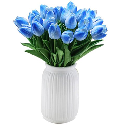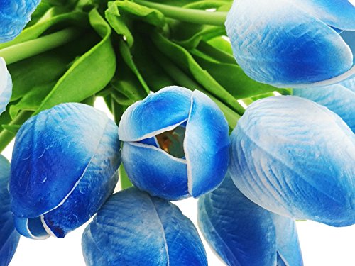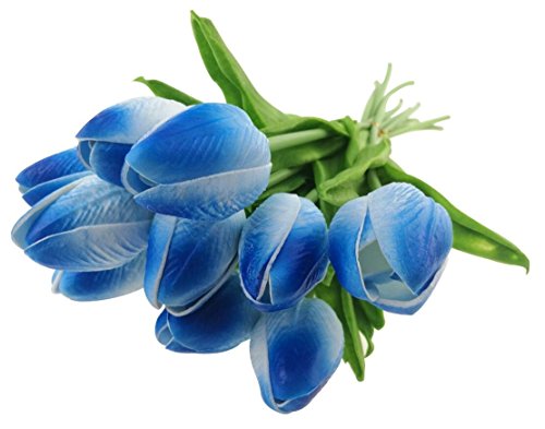 PU Latex Real Touch Artificial Mini Cute PU Tulip Flower Wedding Bridal's Bouquets Wedding Home Table Decoration (Sky Blue)
