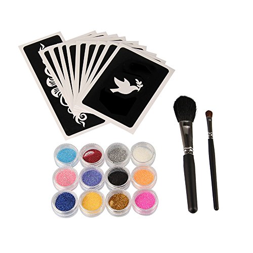 Just press the stencil design onto the skin, apply the skin safe glue, brush on the glitter and then you'll have a ideal shimmering design! Glitter Tattoo is Non-Toxic, and safe for using on skin. The waterproof glitter tattoos will last from 3 to 7 days under normal conditions. But it's easy to cleared as well, just gently scrubbing with an alcohol swab, oil or lotion, then they will be removed. Suggest using for ages 8 and up.