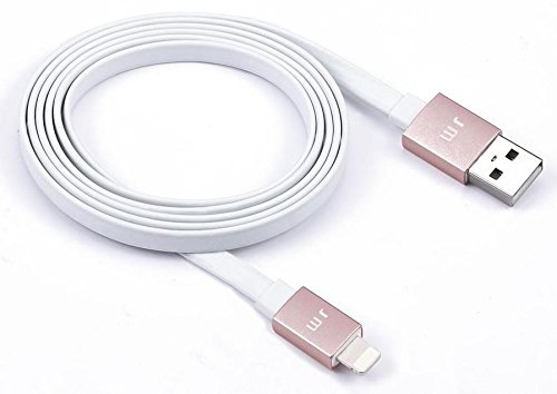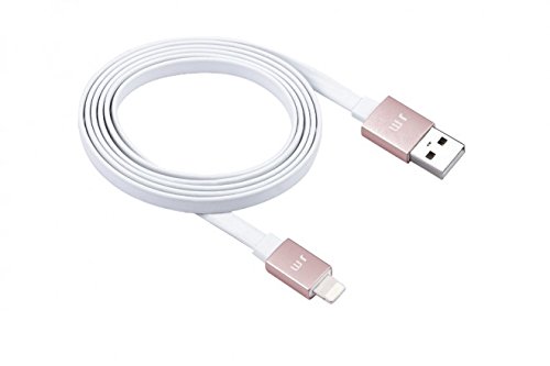 Just Mobile AluCable Flat with 2.4A High Speed Aluminum Lightning Connector for iPhones, iPads, and iPods, White/Rose Gold (DC-268RG)