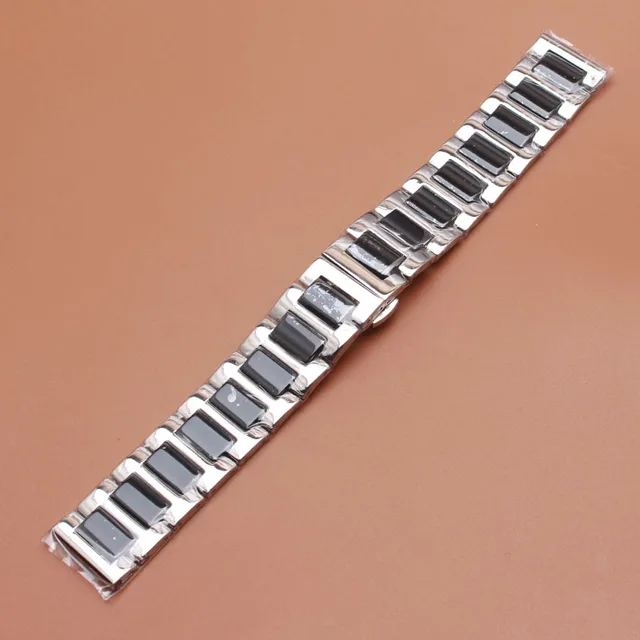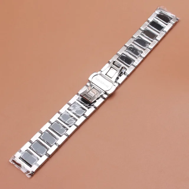 | [해외]세라믹 시계 줄 솔리드 링크 시계 스트랩 팔찌 실버 스테인레스 스틸 butterfly 버클 배포 기어 s2 기어 22 s3 미리메터 |