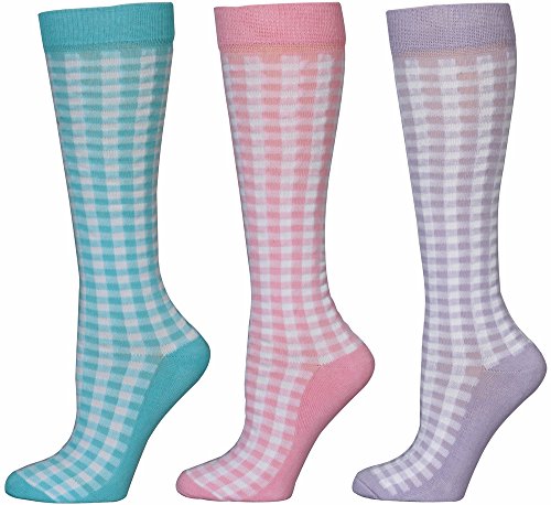 -. Title : Tuffrider Ladies' Gingham Check Socks - Aqua/pink/light Purple 3 Pack