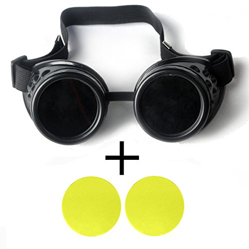 -. Title : New Sell Vintage Steampunk Goggles Glasses Welding Cyber Punk Gothic - Black Frame with 2 Lens